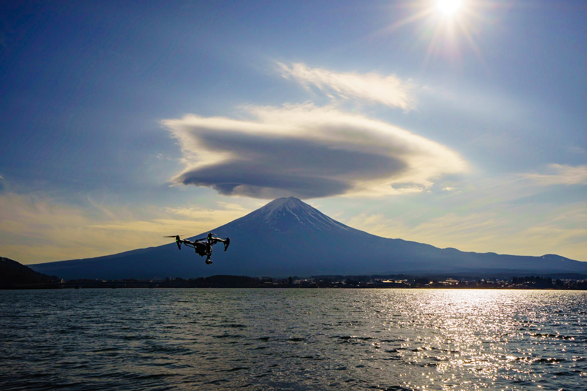 The Mt. Fuji, Pacific Ocean, Coastline of East Japan in the rising sun light.